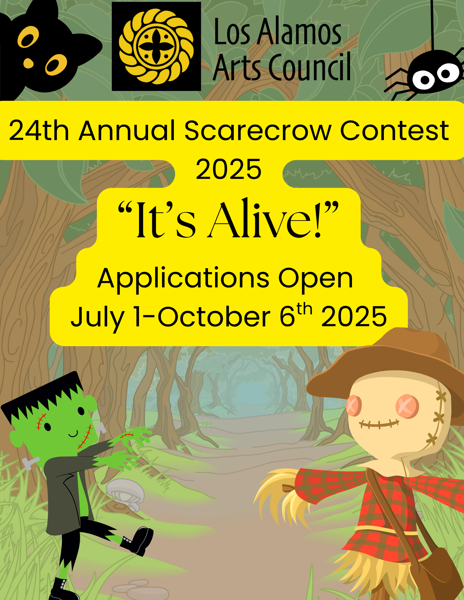 From deep within the minds and laboratories from artists around Los Alamos, bring your scarecrow alive during the Los Alamos Arts Council 2025 Scarecrow Contest! Bring us your best creations! Whether they creep and crawl from the lagoon, or fly from the belfries, help decorate downtown with this classic annual event.